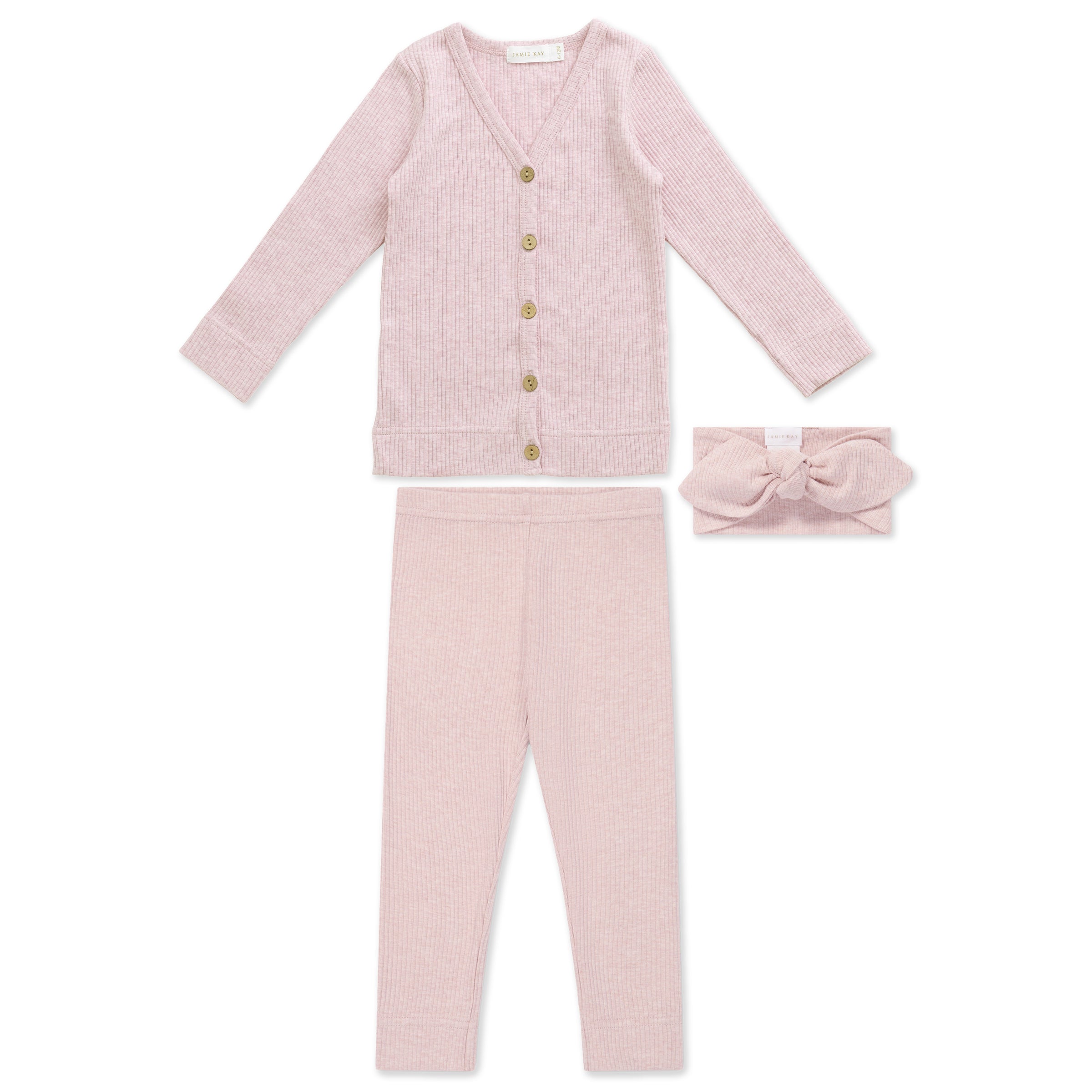 Organic Pink Cardi Headband Set