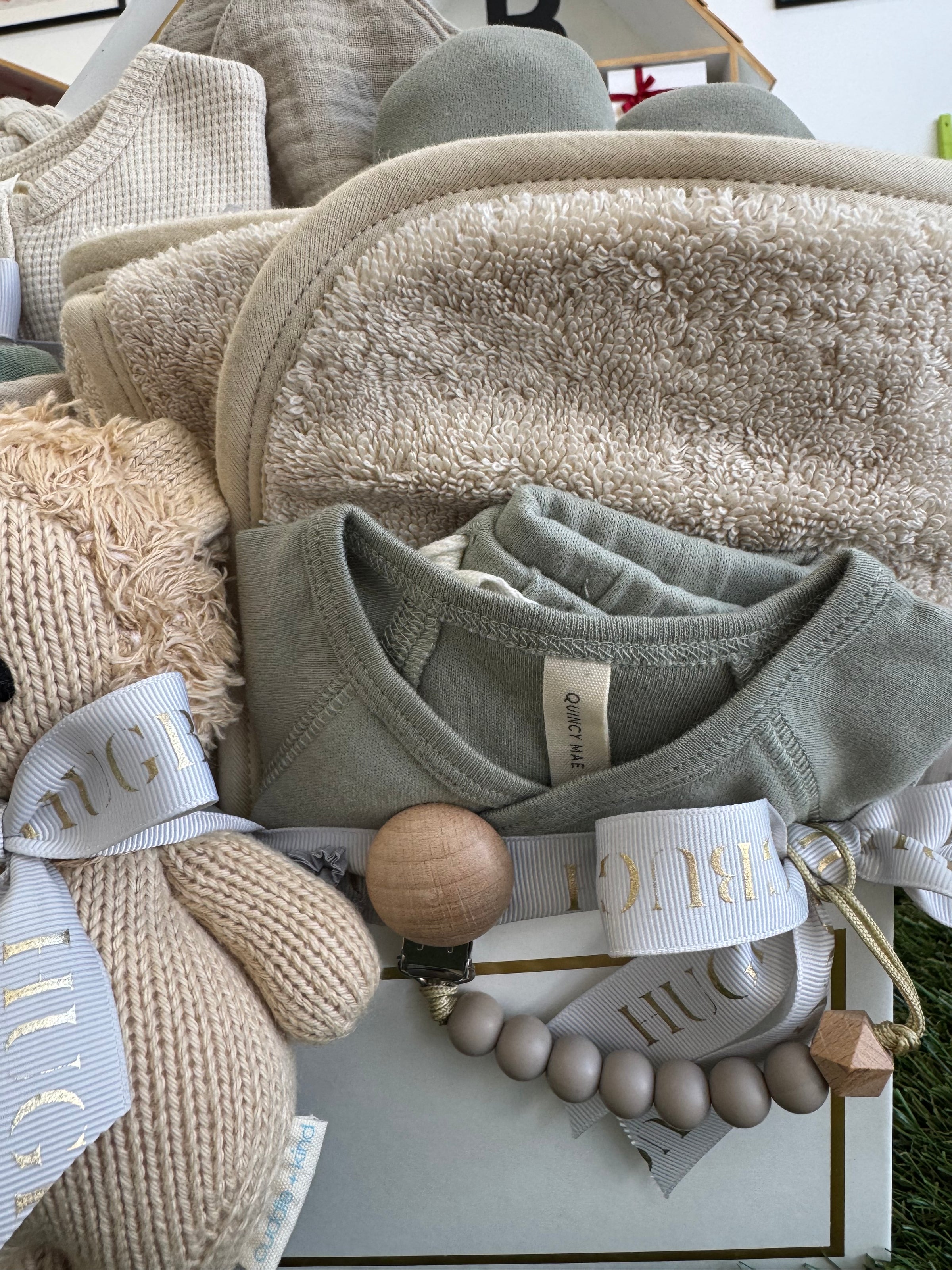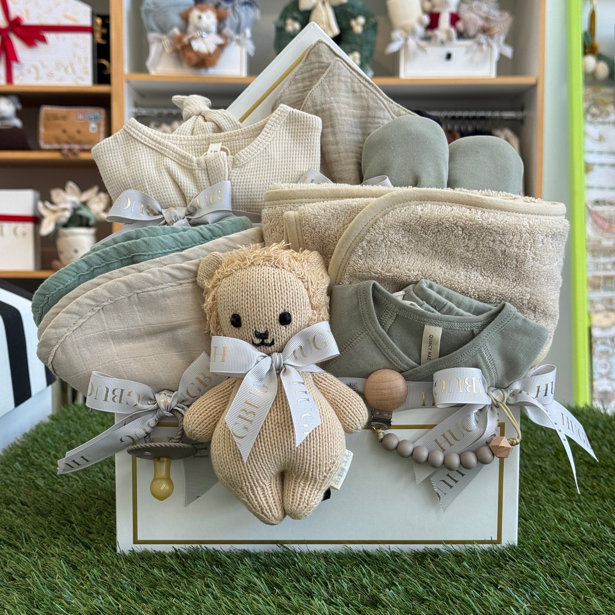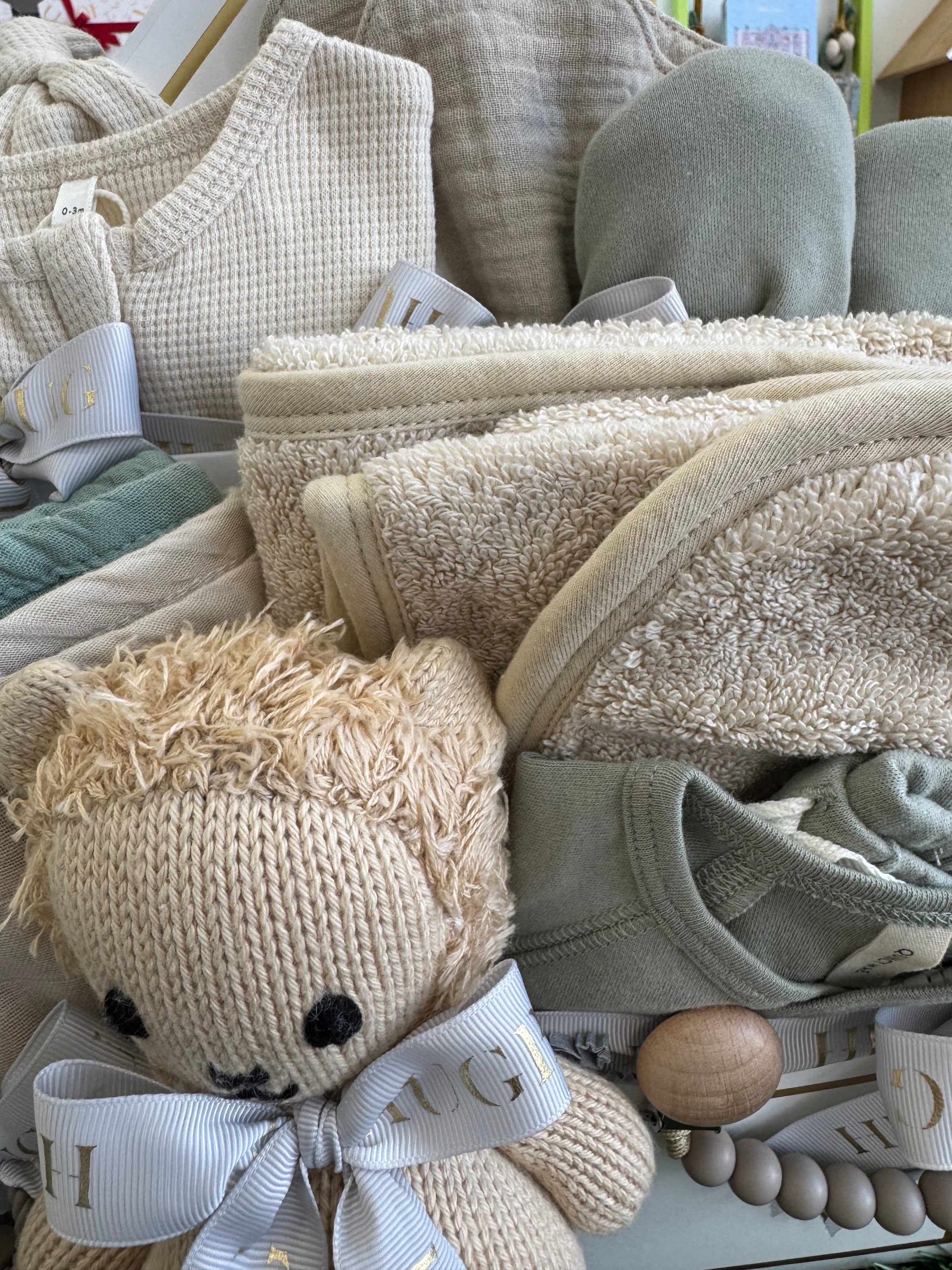 " SEND A HUG "with our luxury baby gift box. Curated with soft essentials, keepsakes, and neutral tones - perfect for baby showers or new parents.